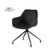 Dank der praktischen 180° Rückholfunktion bietet der Stuhl zusätzliche Bewegungsfreiheit. Das pulverbeschichtete Vierfußgestell aus matt-schwarzem Metall gewährleistet Stabilität bis 150 kg. Ideal für Esszimmer, Küche oder Wohnzimmer.
